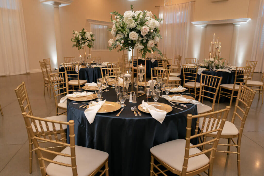 Bakersfield indoor wedding place with all-inclusive packages including luxury guest table centerpieces